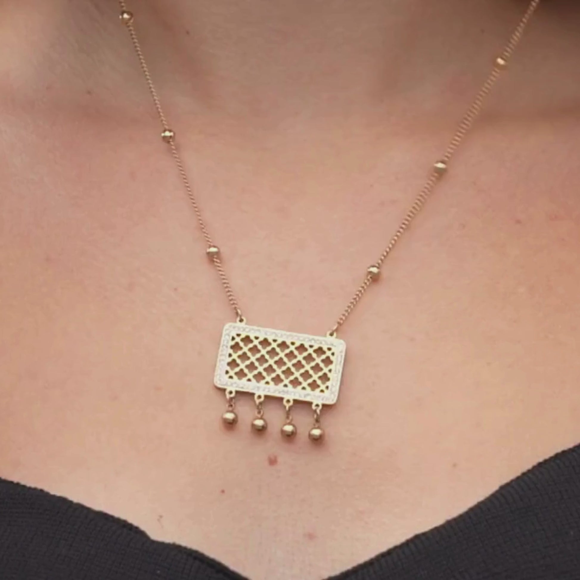 This ethnic necklace is handcrafted from stainless steel and plated with 18K gold, making it a perfect gift for birthdays, anniversaries, or a meaningful everyday piece.